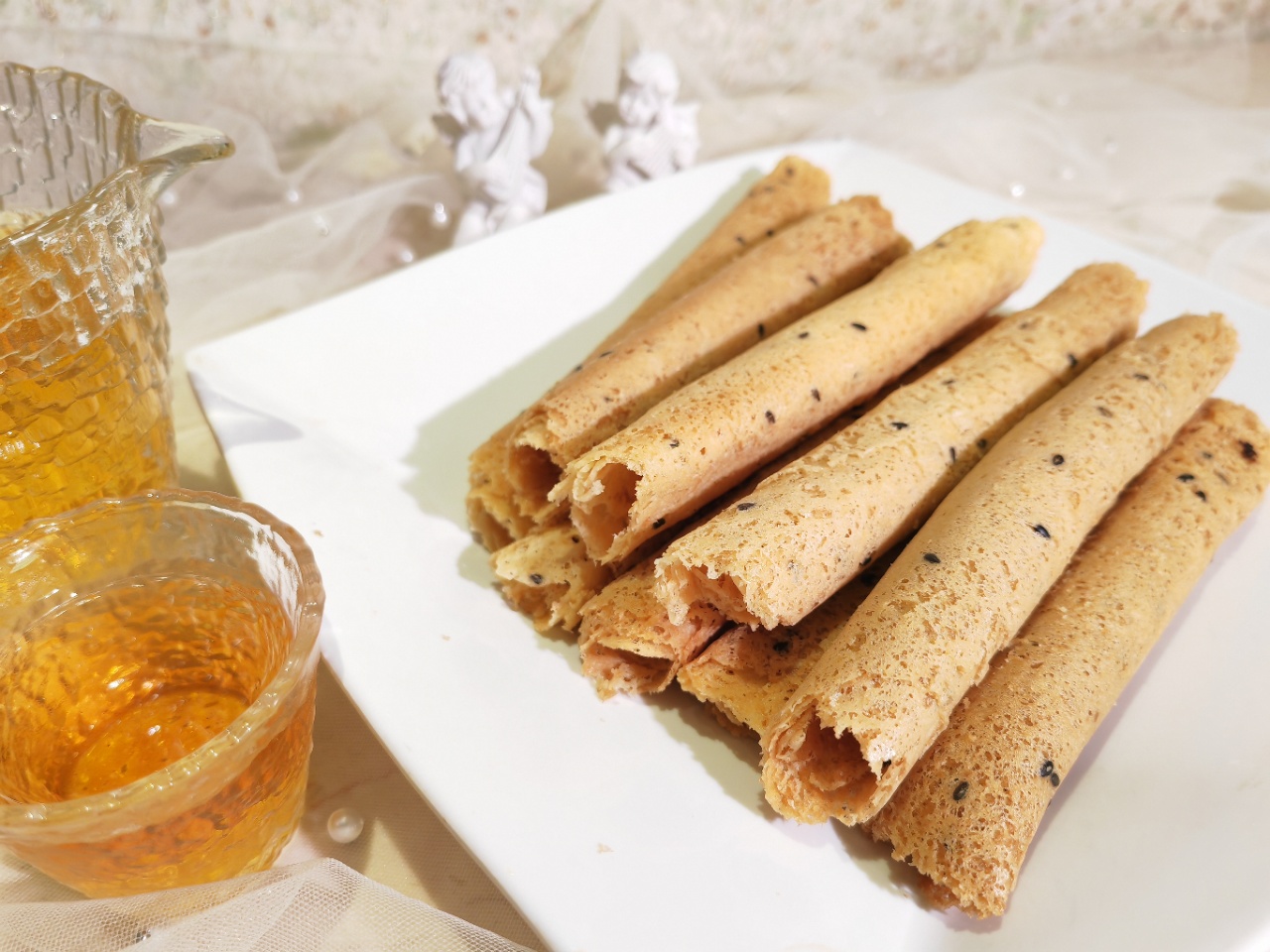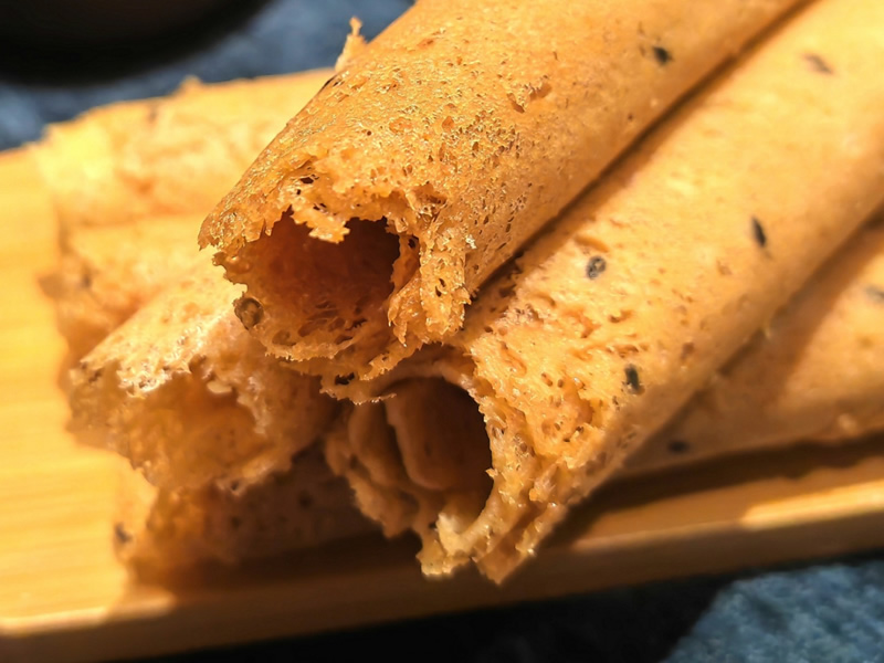 芝麻糖的香味浓郁着芝麻的味道,口感十足,且丰富,多么让人怀念的一种童年回忆,这就是香酥芝麻蛋卷,又香又有味,酥脆可口。 撕开包装后,一股浓郁的蛋香窜进鼻中,瞬间勾起胃里的馋虫,光是闻着这个味道小编就忍不住咽了咽口水。